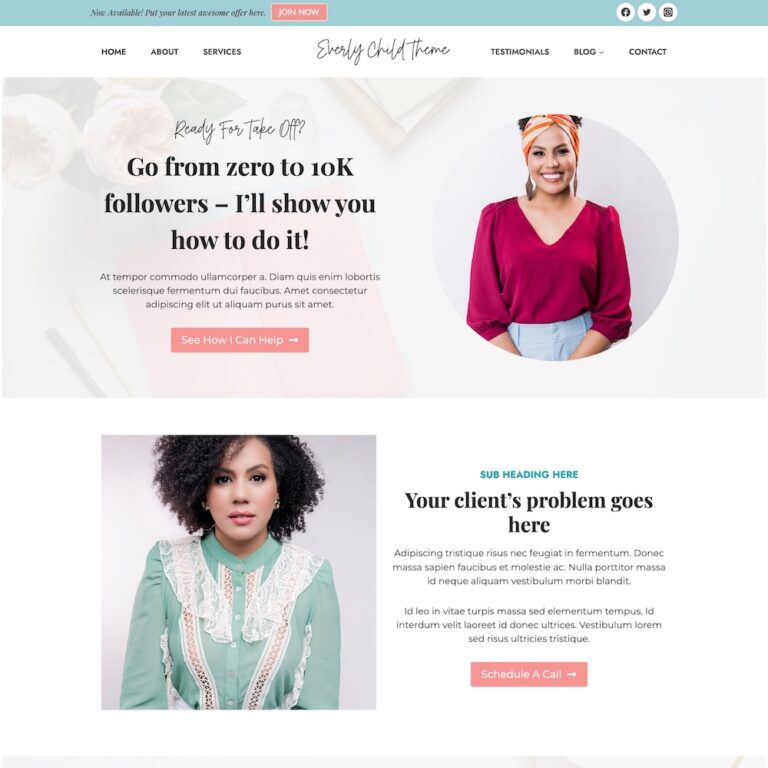 Try one of my Kadence child themes that will give you the right website foundation but allow you the flexibility to customise and make it your own.
