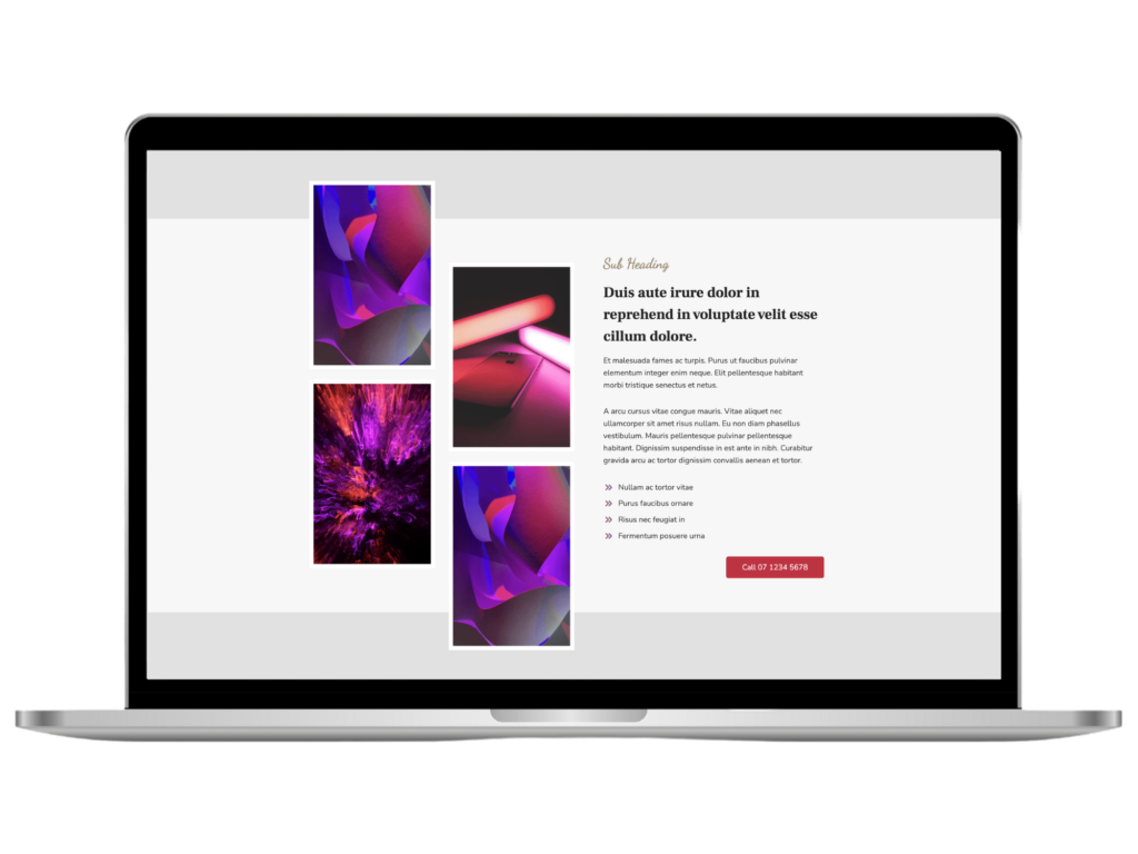 Find your preferred layout by searching through the different categories available and select the one you want to import. It will update to reflect your themes colours and fonts. Then simply adjust your images and text to make it truly yours.